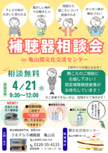4月21日㈫に亀山市関文化交流センターにて補聴器相談会を開催します🎶